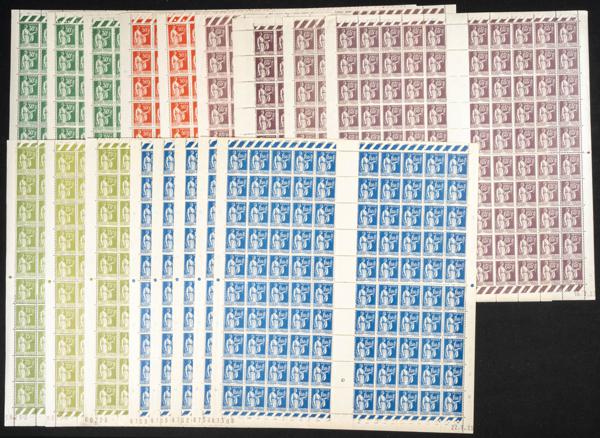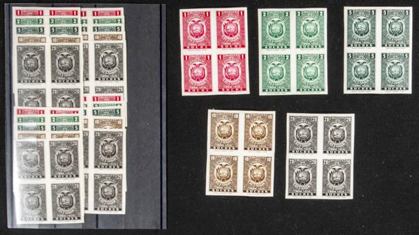 ★★(1945ca). Conjunto de veinte series completas (cinco valores cada una) de Fiscales Móviles de Ecuador (sin dentar). A EXAMINAR.