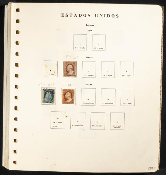 (1847ca). Espectacular colección y muy bien representada de Estados Unidos entre 1847 y 1992, en usado e incluyendo numerosos sellos clásicos de alto valor, algunos con certificados, asà como variedades diversas referenciadas en el catálogo Scott, destacando la serie del Descubrimiento de América de 1893, Personajes de 1894 y 1895, Exposición de Omaha, Personajes de 1902 y numerosas variedades de las emisiones de Franklin y Washington, incluye además sellos de Servicio, Paquetes Postales, sellos de Caza entre 1934 y 1992 y un álbum de territorios norteamericanos como la Zona del Canal de Panamá, Cuba y Filipinas, destacando en esta última la serie del vuelo Madrid-Manila de 1926. ALTISIMO VALOR DE CATALOGO. IMPRESCINDIBLE EXAMINAR.