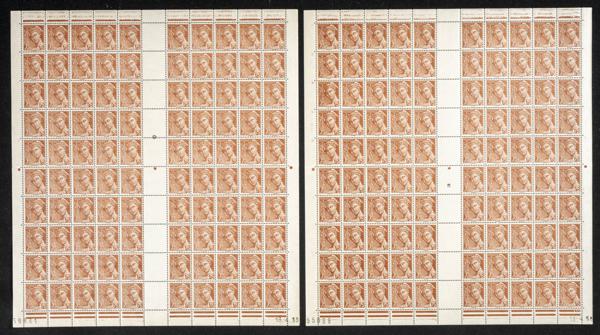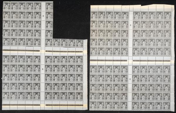 ★★Yvert 416A(200). 1938. Dos pliegos completos de cien sellos cada uno de 75 cts castaño rojo de 1938 de Francia (muy buena calidad). A EXAMINAR. Yvert 2023: 1.900 Euros