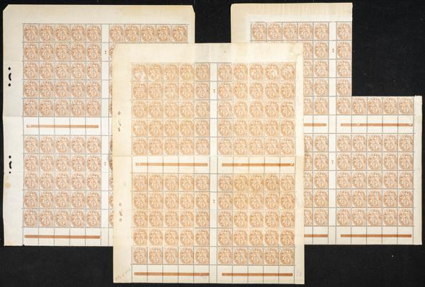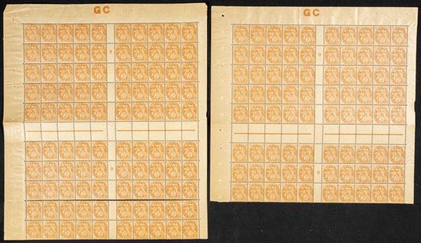 ★★Yvert 109, 109e(480). 1900. Conjunto de cuatrocientos ochenta sellos en pliegos del 3 cts naranja Tipo Blanc de 1900 de Francia nuevos y con diferentes tonalidades, ciento ochenta con papel GC. A EXAMINAR. Yvert 2024: ++480 Euros