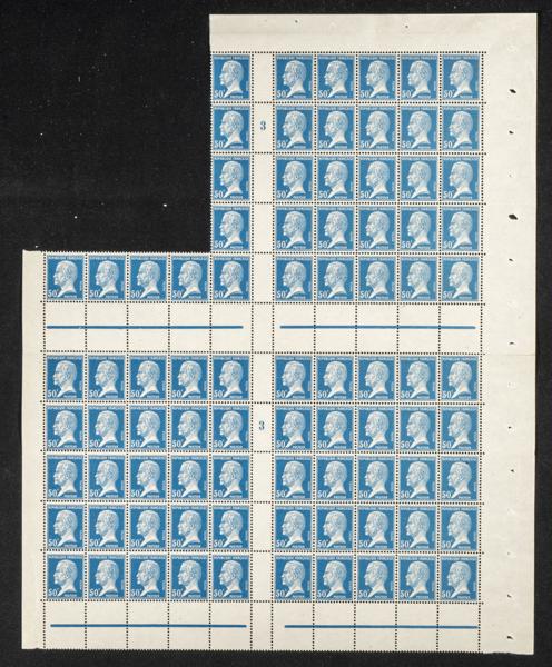 ★★Yvert 176(84). 1923. Ochenta y cuatro sellos de 50 cts azul (Pasteur) de Francia, la mayorÃa excelentes centrajes (alguno con variedad sin nombre del grabador). A EXAMINAR. Yvert 2023: +798 Euros