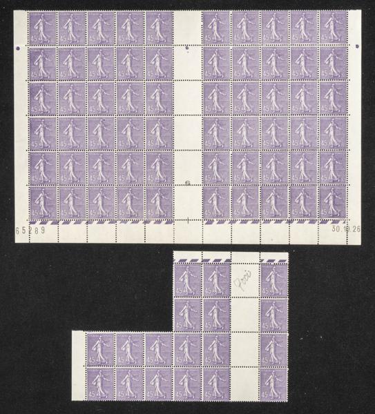 ★★Yvert 197(78). 1926. Setenta y ocho sellos del 45 cts violeta (Sembradora) de Francia, algunos muy bien centrados. A EXAMINAR. Yvert 2023: 1.014 Euros