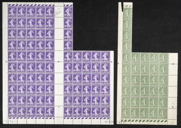 ★★Yvert 234(34), 236(84). 1927. Conjunto de treinta y cuatro sellos de 65 cts verde (Sembradora) y ochenta y cuatro sellos de 40 cts violeta (Sembradora) de Francia. A EXAMINAR. Yvert 2023: 964 Euros