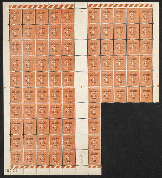 ★★Yvert 264(84). 1930. Ochenta y cuatro sellos de 50 cts naranja (Congres du B.I.T.) de Francia. A EXAMINAR. Yvert 2023: 588 Euros