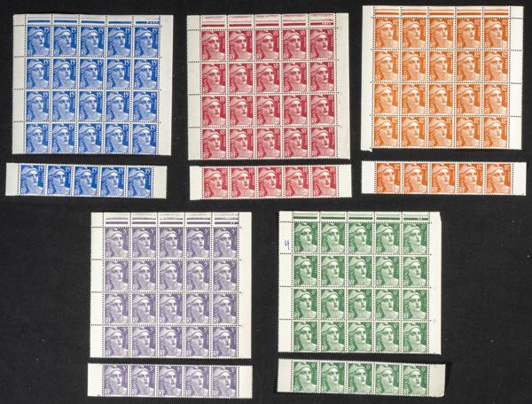 ★★Yvert 883/87(25). 1951. Conjunto de veinticinco series completas de Mariana Gandon de 1951 de Francia (buena calidad). A EXAMINAR. Yvert 2014: 750 Euros