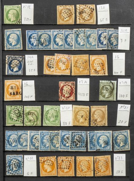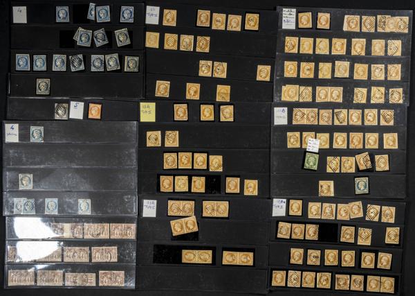 (★)/(1849ca). InteresantÃsimo conjunto de más de quinientos sellos clásicos de Francia entre 1849 y 1890, en nuevo y usado (mayorÃa) e incluyendo alguna pareja o bloque, además de algún matasello especial o variedad. ALTISIMO VALOR DE CATALOGO. A EXAMINAR.