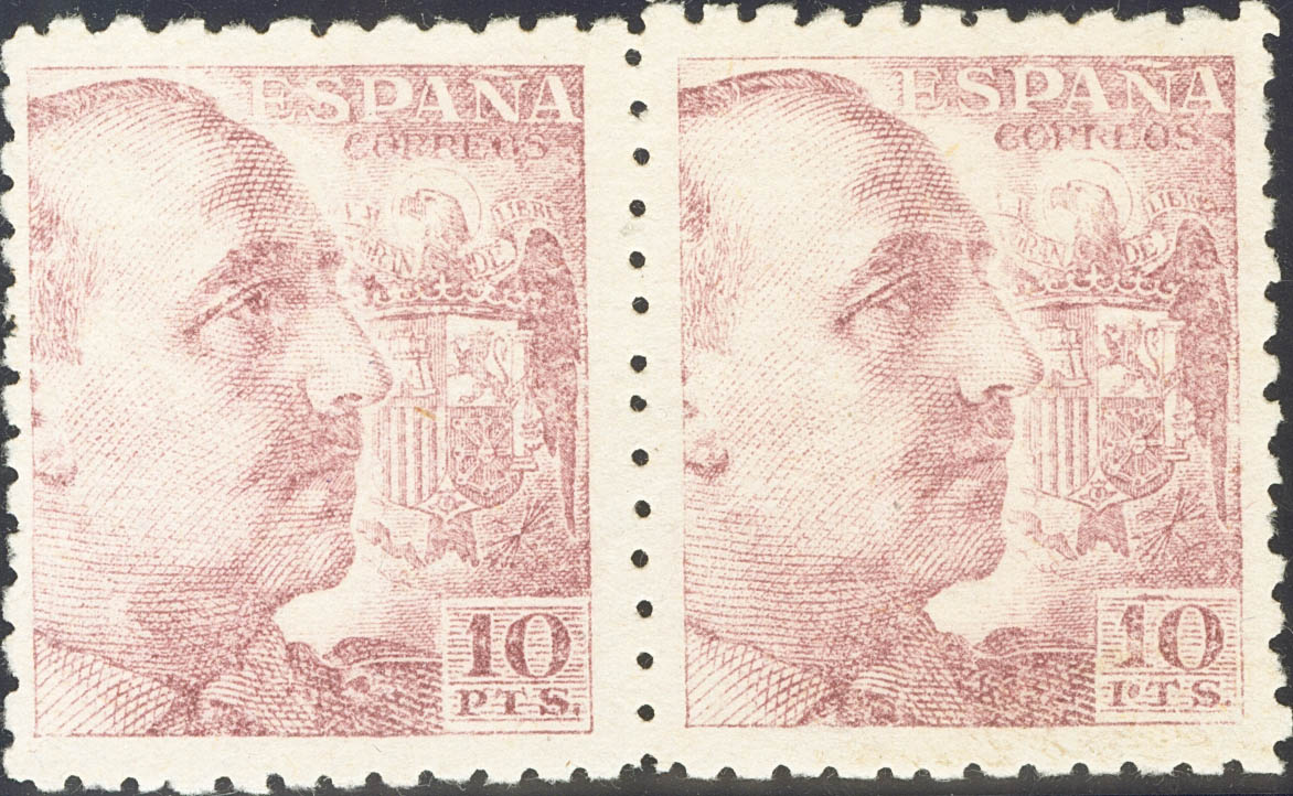 ★★ 934cc(2). 1939. 10 pts lila castaño, pareja. CAMBIO DE COLOR. MAGNIFICA Y RARA. Edifil 2021: +830 Euros