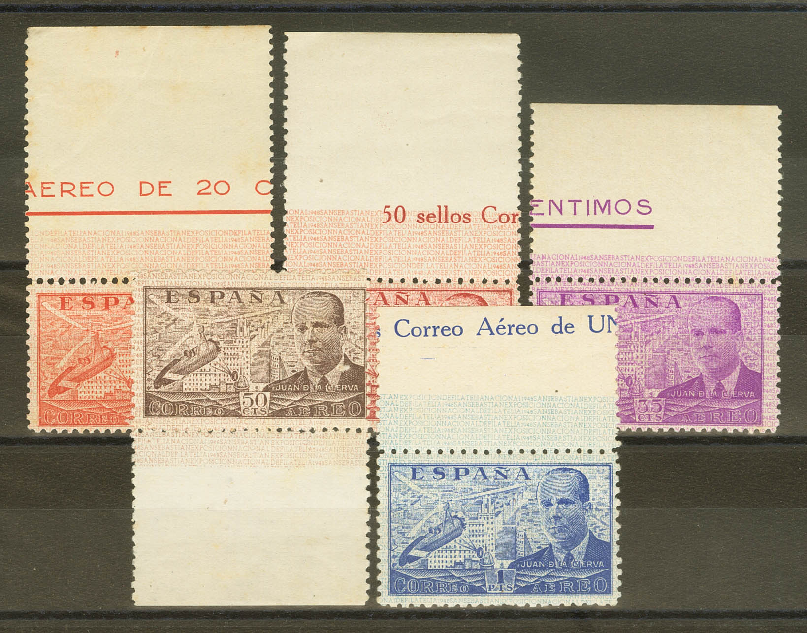 ★★ 940/44I. 1940. Serie completa, cinco valores (manchitas del tiempo). EXPOSICION NACIONAL DE FILATELIA 1948 SAN SEBASTIAN. MAGNIFICA. Edifil 2021: +85 Euros