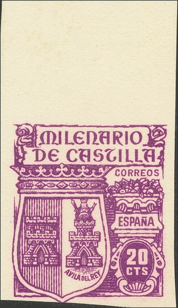 (★) 980s. 1944. 20 cts lila, borde de hoja. SIN DENTAR. BONITO. Edifil 2020: 220 Euros
