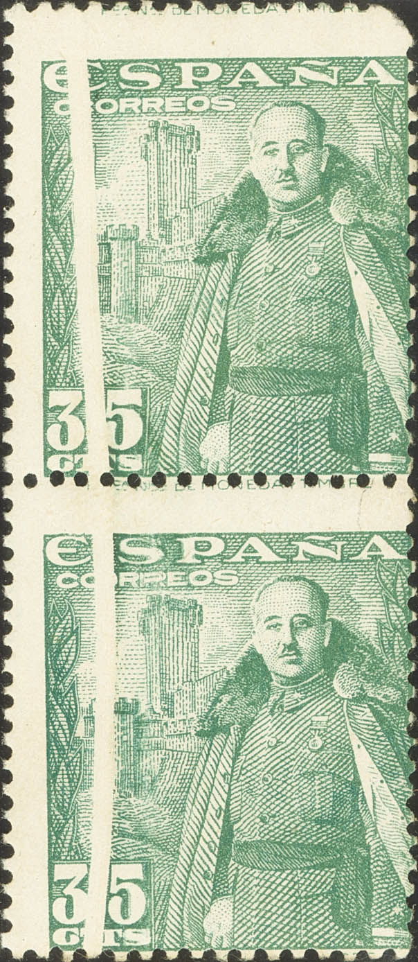 ★★ 1026iw(2). 1948. 35 cts verde, pareja. Variedad FUELLE VERTICAL DE PAPEL. MAGNIFICA.