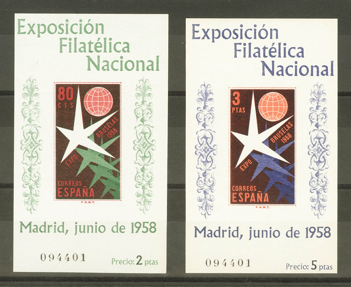 ★★ 1222/23. 1958. Hojas bloque. Misma numeración. MAGNIFICAS. Edifil 2024: 60 Euros