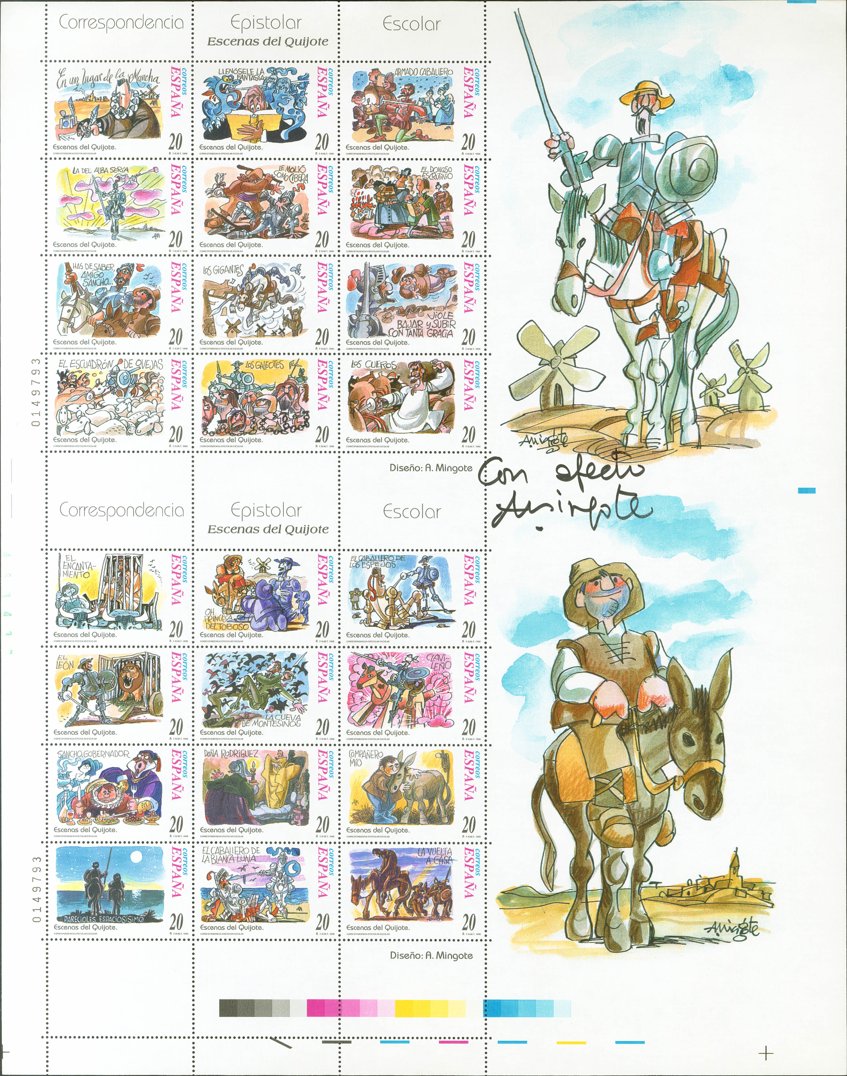 ★★ MP61A/B. 1998. Dos minihojas sin cortar (unidas) CORRESPONDENCIA EPISTOLAR ESCOLAR, firmadas por Antonio Mingote. MAGNIFICA Y MUY RARA. Dictamen CEM.