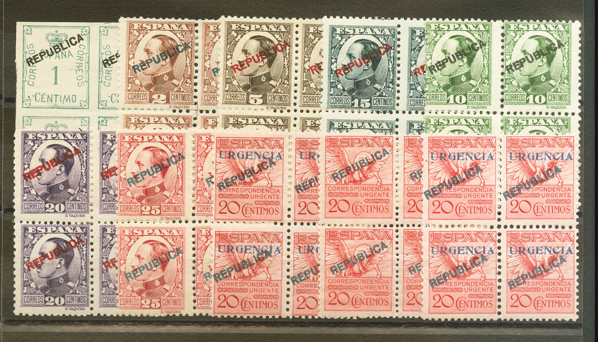 ★★/★ 1/8(4), 8A(4), 8B(4). 1931. Serie completa, incluyendo valores complementarios, bloques de cuatro. MAGNIFICA. Edifil 2017: +328 Euros