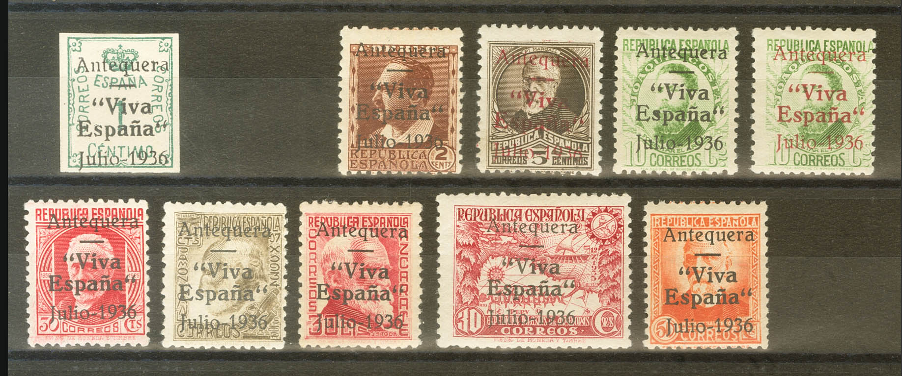 ★ NE1, NE3/11. 1936. Serie completa, a falta de 1 cts verde y 20 cts rosa. NO EMITIDA. MAGNIFICA. Edifil 2017: 286 Euros