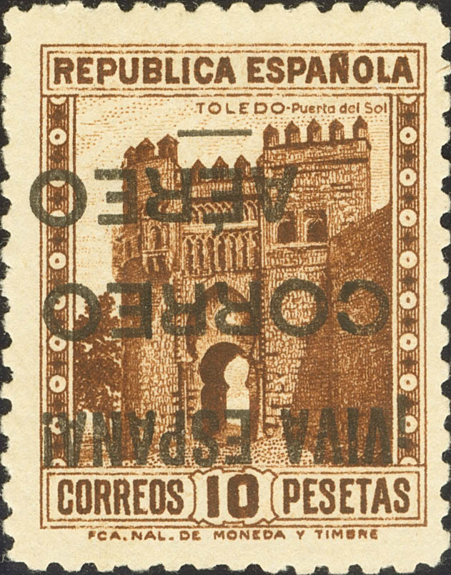 ★ 80hi. 1937. 10 pts castaño. SOBRECARGA INVERTIDA. MAGNIFICO. Edifil 2017: 100 Euros