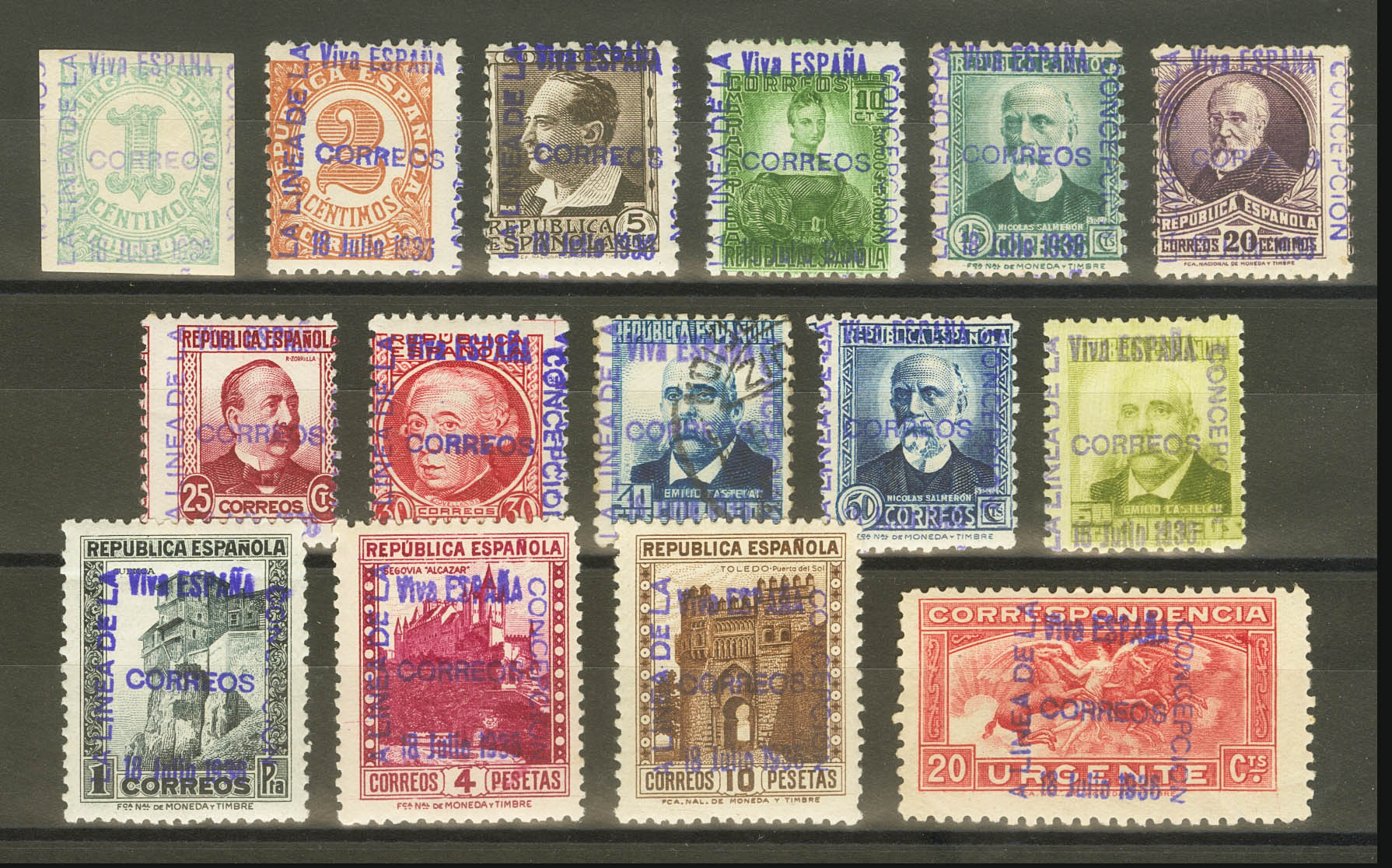 ★★ 1/15. 1936. Serie completa (40 cts azul Castelar, matasellado). MAGNIFICA. Edifil 2017: 230 Euros