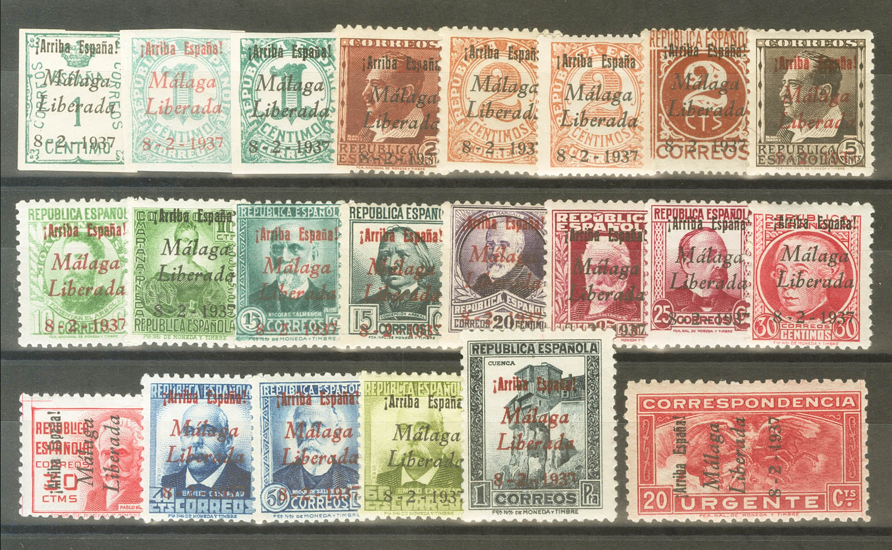 ★ 1/4, 6/9, 11/24. 1937. Serie completa, a falta del 2 cts castaño rojo (Edifil Nº5) y 10 cts verde claro (Edifil Nº10). MAGNIFICA.