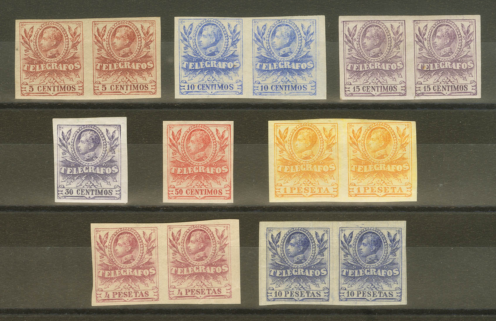 ★/(★) 39/46s(2). 1905. Serie completa, en parejas (excepto el 30 cts y 50 cts de los que sólo hay un sello). SIN DENTAR. MAGNIFICA. Edifil 2020: 756 Euros