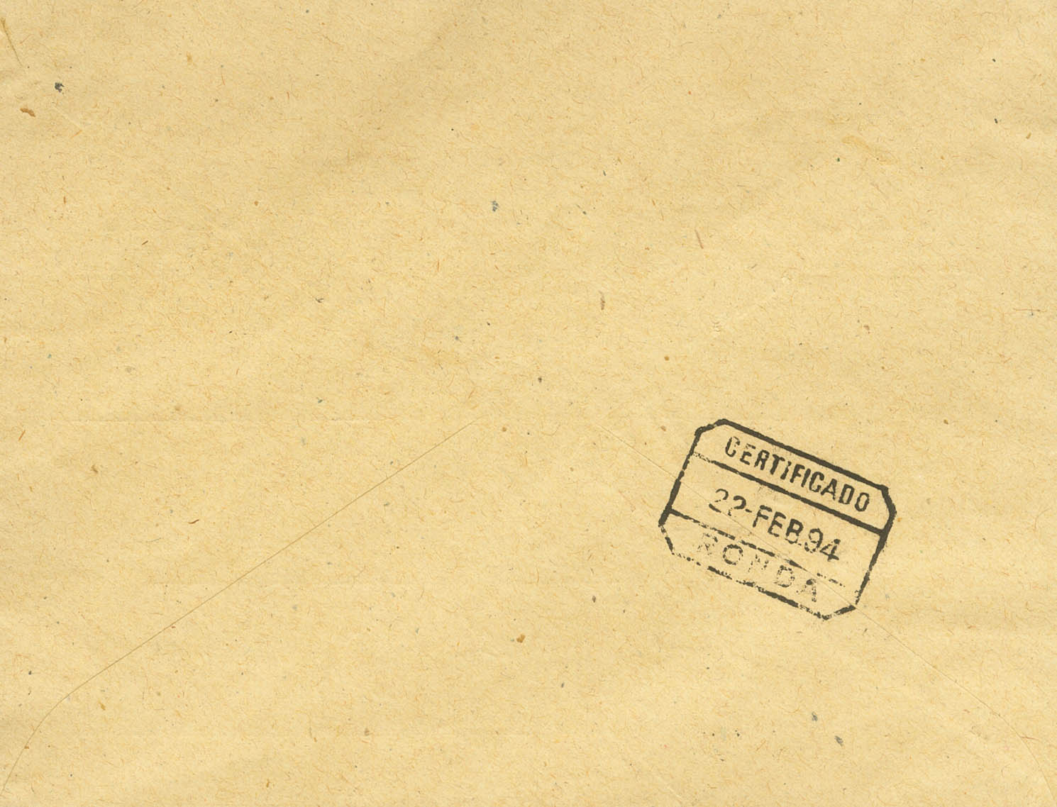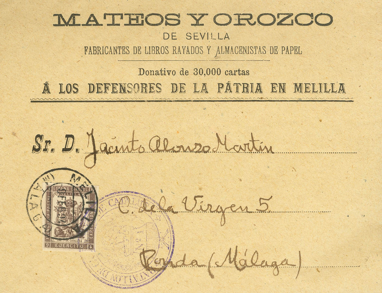 47s. 1894. Sin valor SIN DENTAR, marrón. MELILLA a RONDA (MALAGA). Matasello MELILLA / MALAGA, al dorso llegada. MAGNIFICA Y RARA.