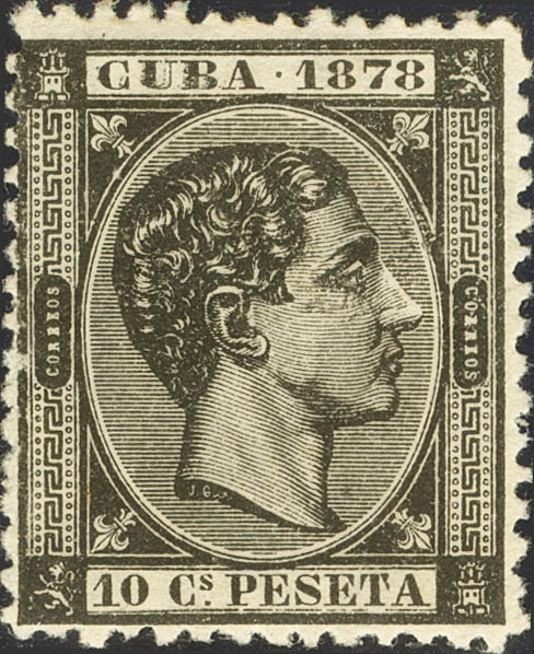★ 45. 1878. 10 cts negro. MAGNIFICO. Cert. CEM. Edifil 2024: 140 Euros