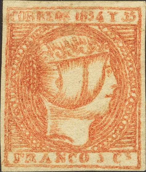 ★ 1. 1854. 5 cuartos naranja. Color muy intenso y amplios márgenes. PIEZA DE LUJO. Cert. GRAUS.