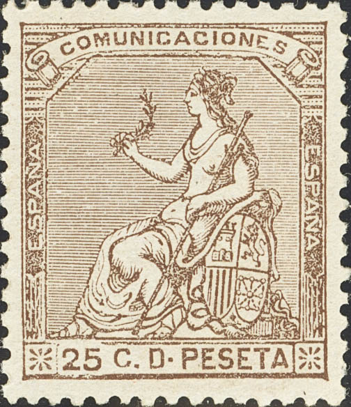 ★ 135. 1873. 25 cts castaño. Color intenso y centraje excepcional. MAGNIFICO.