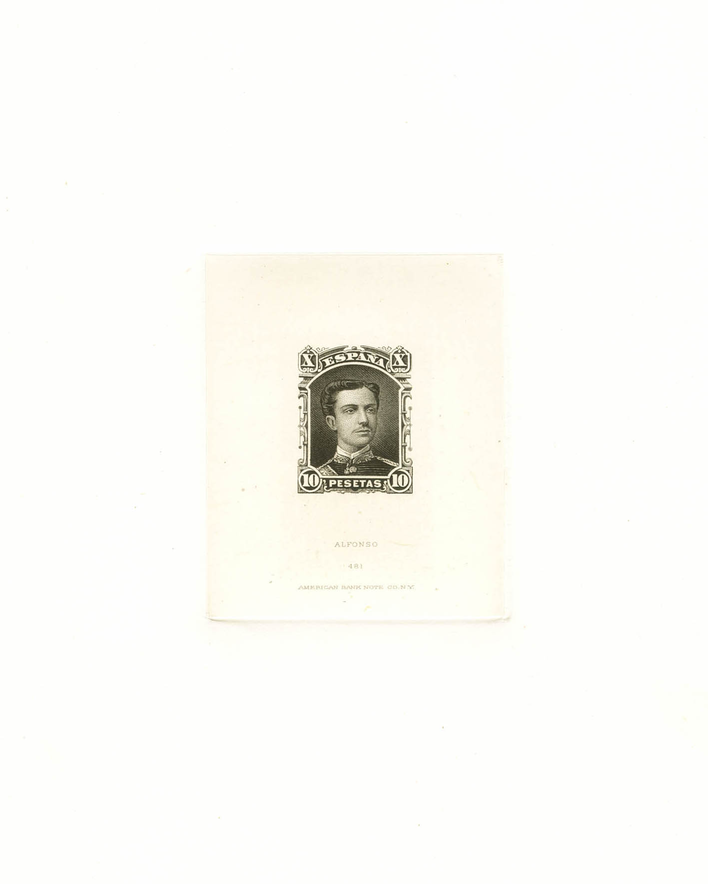(★)1876. 10 pts negro. PRUEBA DE PUNZON, de un diseño no adoptado, numeración e inscripción AMERICAN BANK NOTE. MAGNIFICA Y EXTRAORDINARIAMENTE RARA.