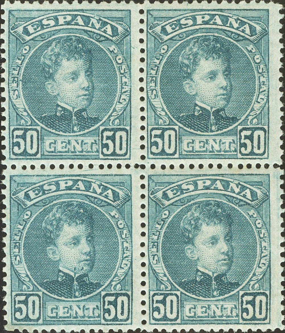 ★★/★ 252(4). 1901. 50 cts azul verdoso, bloque de cuatro. MAGNIFICO.