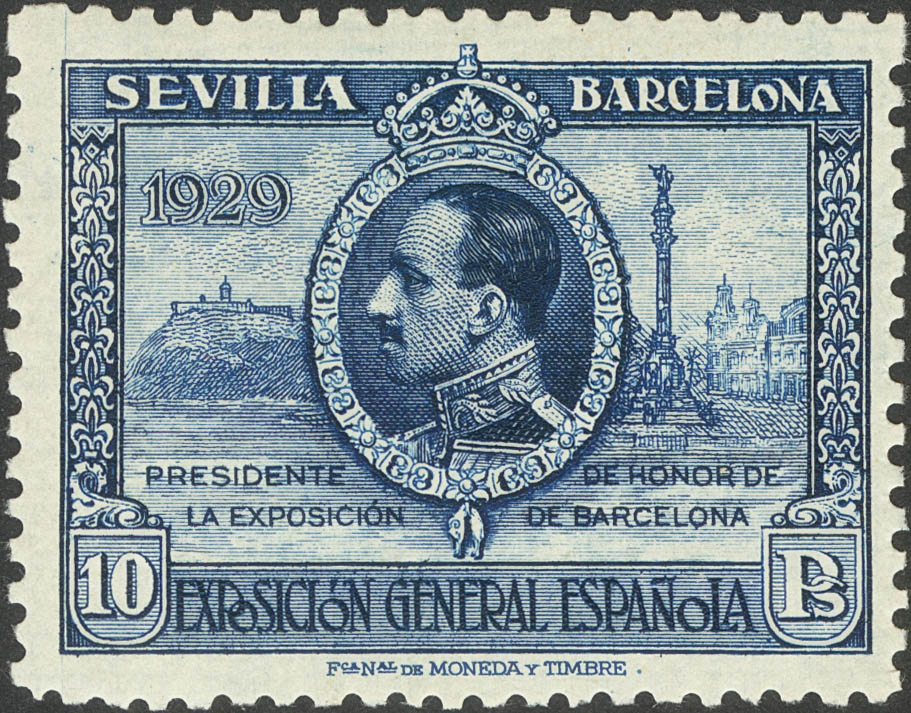 ★★ 446cc. 1929. 10 pts azul. CAMBIO DE COLOR. MAGNIFICO Y MUY RARO. Edifil 2020: +320 Euros