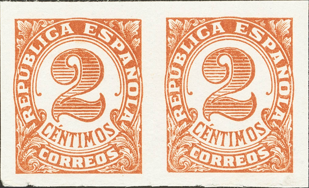 (★) 678s(2). 1933. 2 cts castaño rojizo, pareja. SIN DENTAR. MAGNIFICA. Edifil 2024: 88 Euros