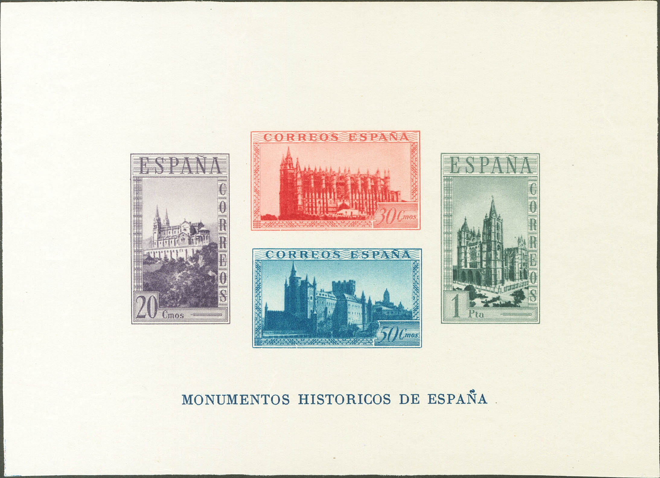 ★★ 848s. 1938. Hoja bloque. SIN DENTAR y SIN NUMERACION. MAGNIFICA Y MUY RARA. Cert. CEM.