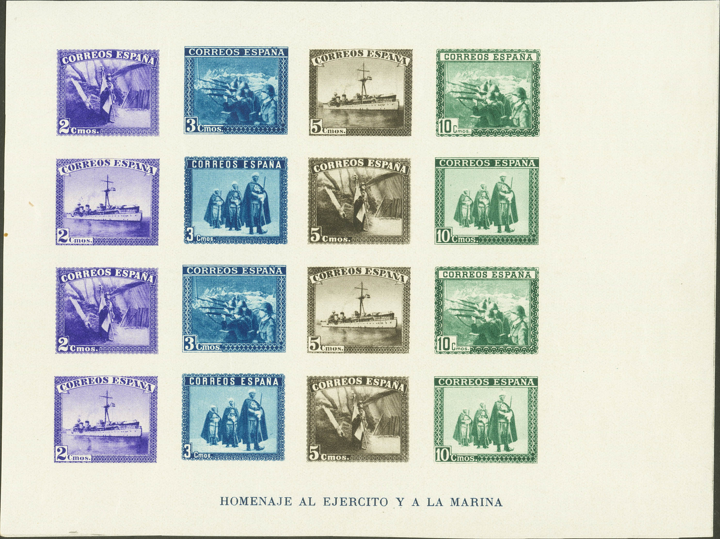 (★) 850P. 1938. Hoja bloque SIN DENTAR. Variedad FALTA IMPRESION DEL COLOR NARANJA. MAGNIFICA Y RARA, NO CATALOGADA.