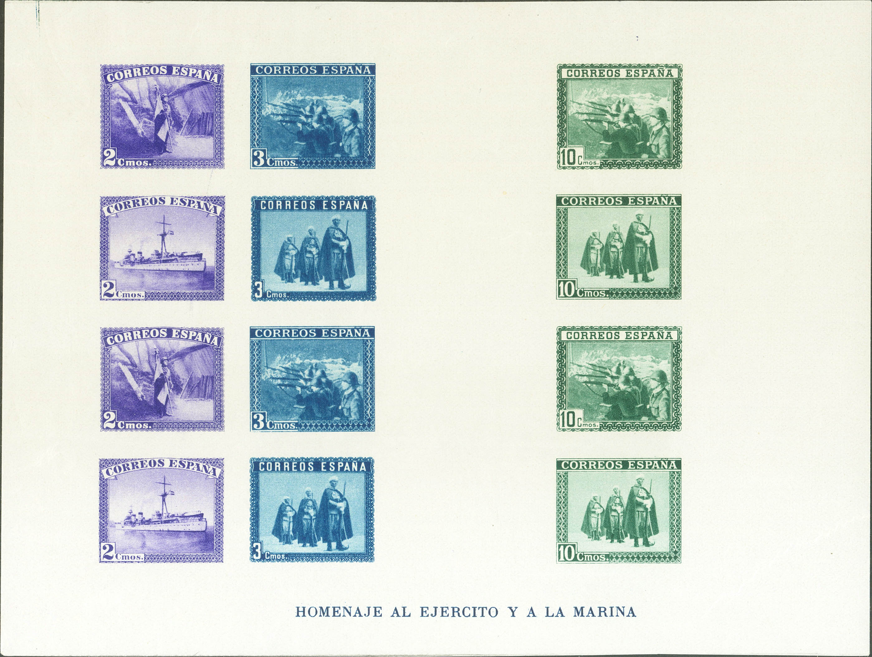 (★) 850P. 1938. Hoja bloque SIN DENTAR. Variedad SIN IMPRESION DE LOS COLORES CASTAÑO y NARANJA. MAGNIFICA Y RARA.