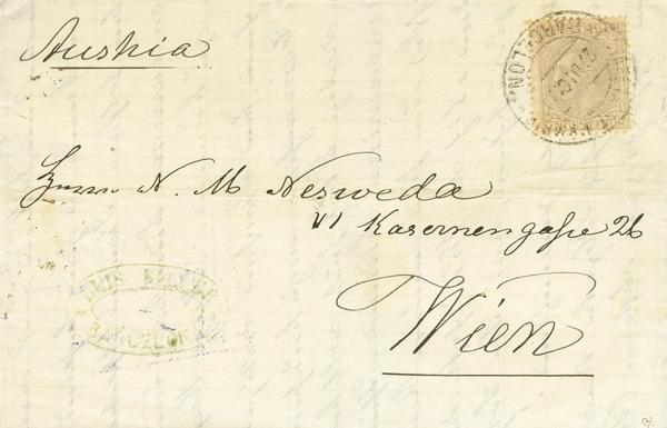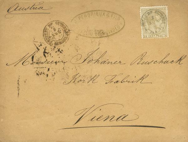 204. 1888. 25 cts azul gris. BARCELONA a VIENA (AUSTRIA). MAGNIFICA E INUSUAL DESTINO.