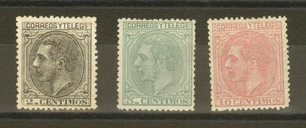 ★ 213, 214, 215. 1889. 2 cts verde, 2 cts negro y 5 cts azul. Excelentes centrajes. MAGNIFICOS.