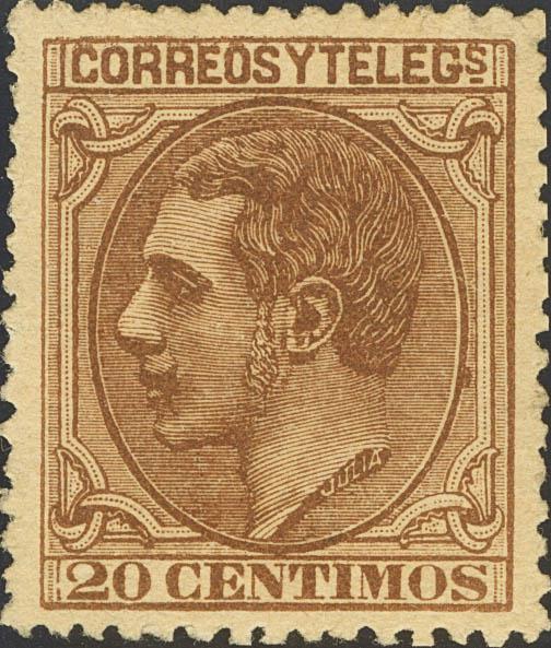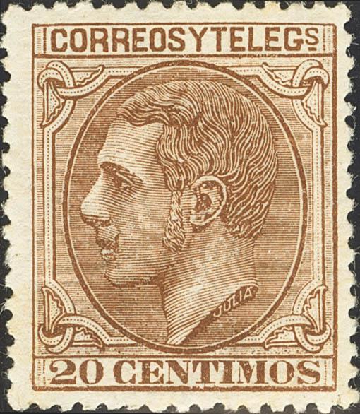 (★) 203. 1879. 20 cts castaño. Centraje excepcional. MAGNIFICO.