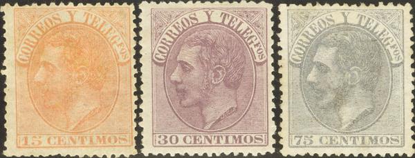 ★ 200, 201, 202. 1879. 2 cts negro, 5 cts verde y 10 cts rosa carmÃn. Bonitos centrajes y colores. MAGNIFICOS.