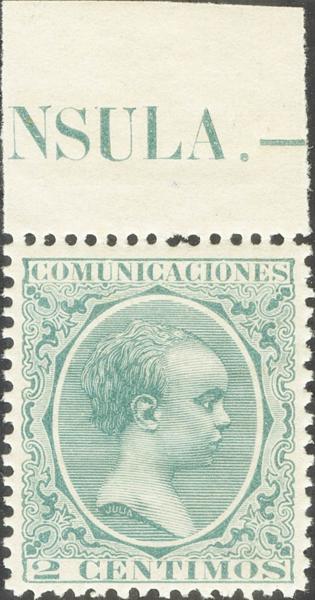 ★★ 213. 1889. 2 cts verde, borde de hoja. PIEZA DE LUJO.