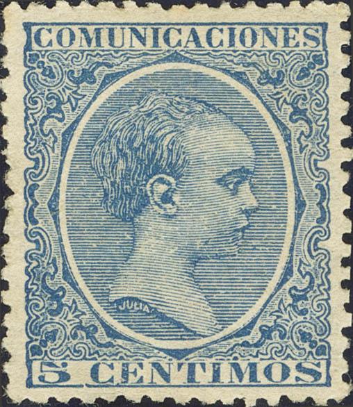 ★ 215. 1889. 5 cts azul. PIEZA DE LUJO.