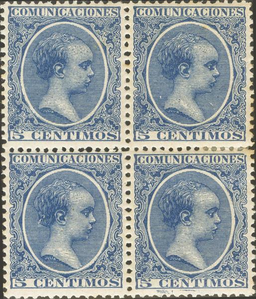 ★★/★ 215(4). 1889. 5 cts azul, bloque de cuatro. Color intenso y bonito centraje. MAGNIFICO.