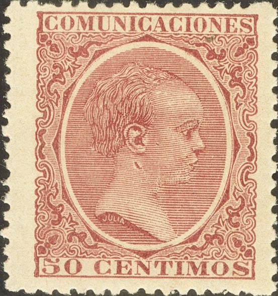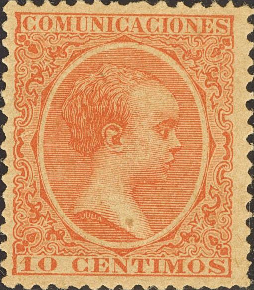 ★ 218s. 1889. 10 cts bermellón. SIN DENTAR. MAGNIFICO Y RARO. Edifil 2024: 440 Euros