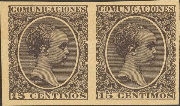 (★) 219s(2). 1889. 15 cts castaño, pareja. SIN DENTAR. MAGNIFICA.