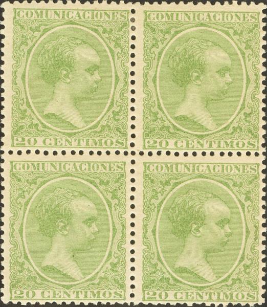 ★★/★ 220(4). 1889. 20 cts verde, bloque de cuatro. Color intenso. MAGNIFICO.