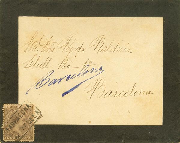 219. 1889. 15 cts castaño. ALTAFULLA a BARCELONA. Matasello carterÃa TARRAGONA / ALTAFULLA, al dorso llegada. MAGNIFICA.