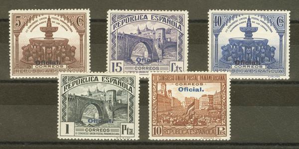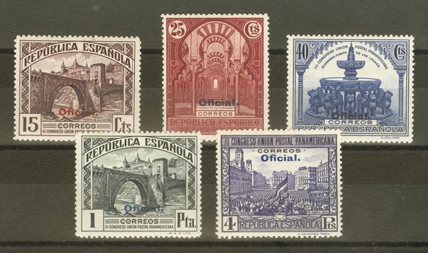 ★★ 620/29hcc. 1931. Serie completa, cinco valores. CAMBIOS DE COLOR EN LA SOBRECARGA, en azul. MAGNIFICA. Edifil 2020: 187 Euros