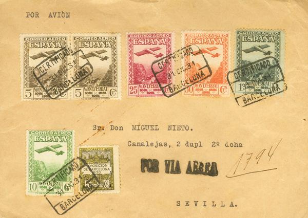 650/54. 1931. Serie completa. Certificado de BARCELONA a SEVILLA. Matasello CERTIFICADO / BARCELONA. MAGNIFICA.