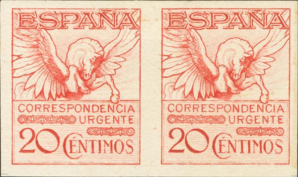 ★ 676s(2). 1932. 20 cts rosa, en pareja. SIN DENTAR. MAGNIFICA Y RARISIMA. Cert. CEM. Edifil 2024: 1.720 Euros