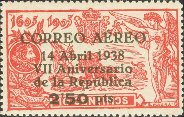 ★★ 756hdv. 1938. 2´50 pts sobre 10 cts rojo. SOBRECARGA DESPLAZADA HACIA ABAJO. MAGNIFICO. Edifil 2020: 245 Euros