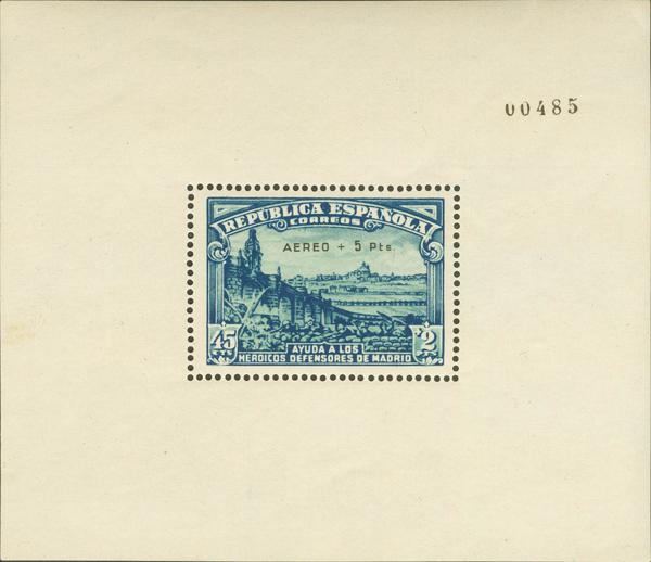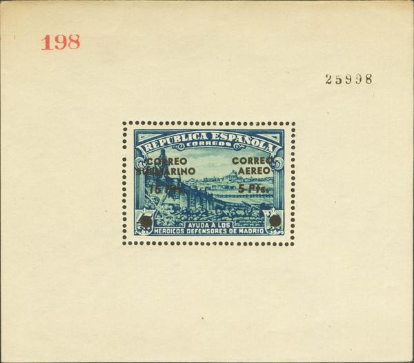 ★★ 760. 1938. Hoja bloque. AEREO+5 PTS (conservación habitual). MAGNIFICA Y MUY RARA. Cert. CEM.