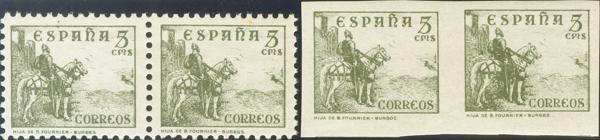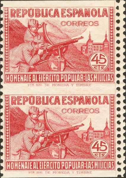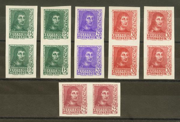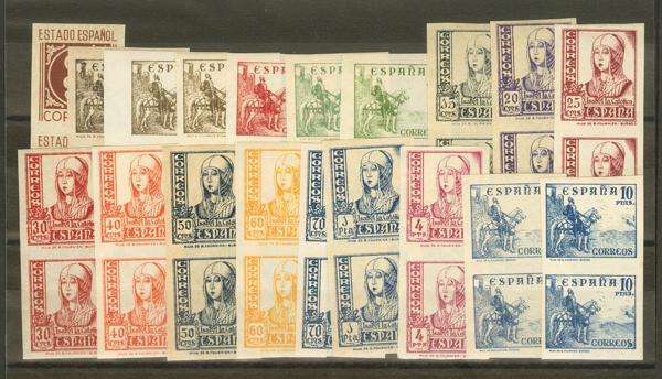 ★★ 814/31s(2). 1937. Serie completa, diecinueve valores en parejas (un sello del 70 cts y otro de 1 pts adheridos entre sÃ). SIN DENTAR. MAGNIFICA Y RARA. Edifil 2024: 1.686 Euros
